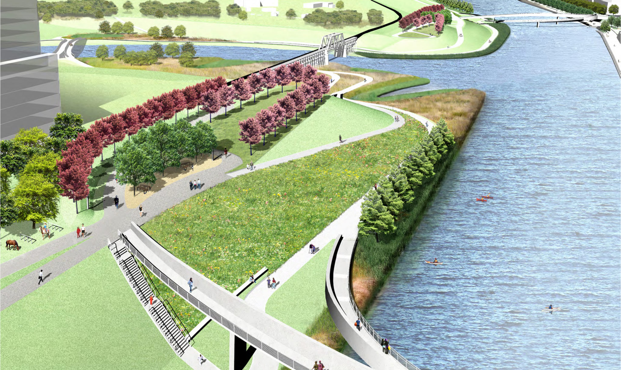 On the economic development side of things, the river reroute provides an opportunity to have a riverfront business district. Once this project is complete, we will have put in 11 miles of river walks throughout the city. The floodgates allow us to have more of a business district in the low-lying areas. The storage creates perfect environments for parks all around the city.