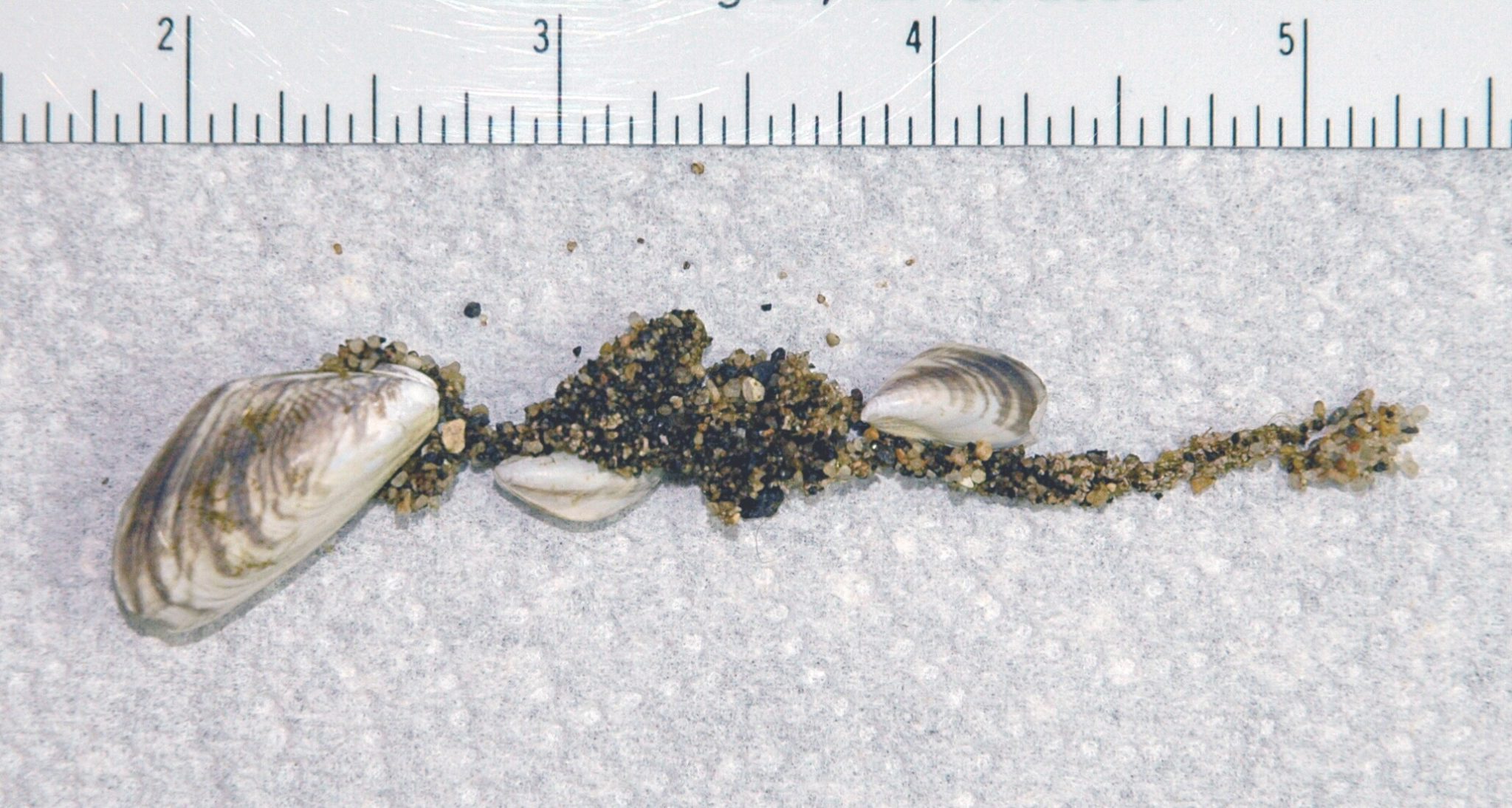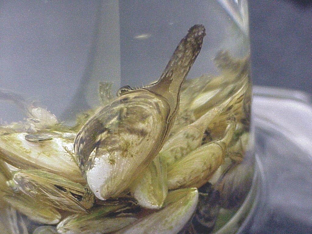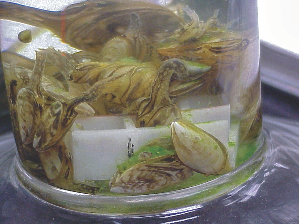 mussel (25 mm or 1 inch in length), that is a tenth of a gram of calcium per animal. If you are in an area where the bedrock is limestone or dolomite, they can do well, but in a soft-water area where there is not much calcium, they will not. If the water body in question doesn’t have snails, clams, or native mussels, the water is probably too soft to support these invaders.